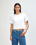 • Boxy fit, slightly cropped, side seamed body